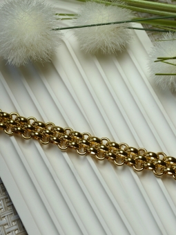 Bracelet inox doré maille SX et perles de verre bleues