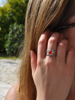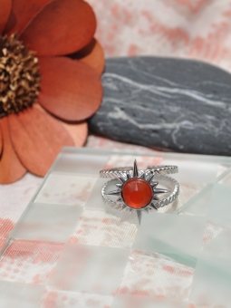 Bague motif fleur et sa pierre de cornaline