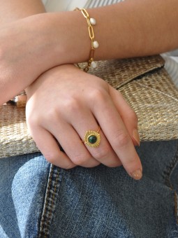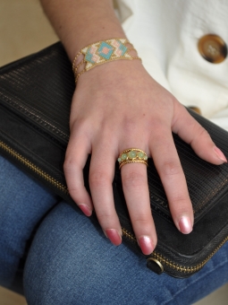 Bague texturée et pierres en aventurine