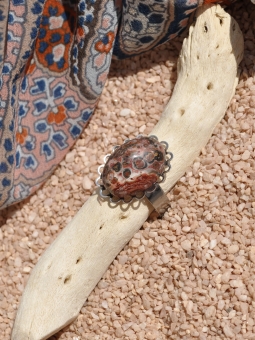 Bague ovale assortie d'une pierre de jaspe léopard