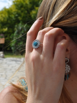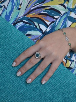 Bague fleur et pierre en labradorite
