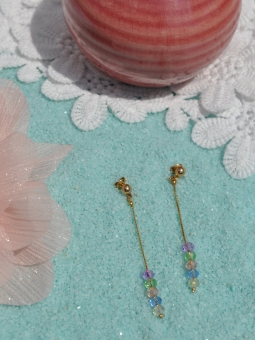 Boucles d'oreilles pendantes et perles de verre multicolore