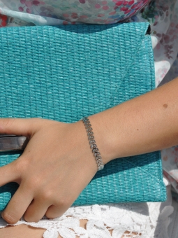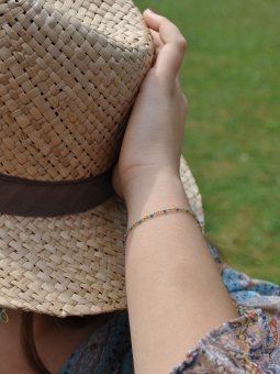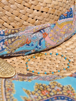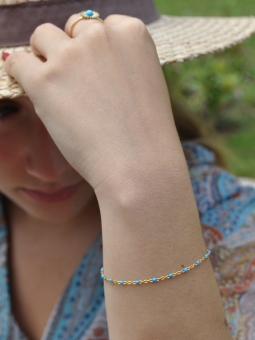 Bracelet de fines perles émaillées d'un bleu turquoise