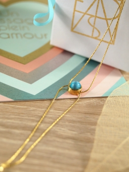 Bracelet double chaîne et son cabochon œil de chat bleu ciel
