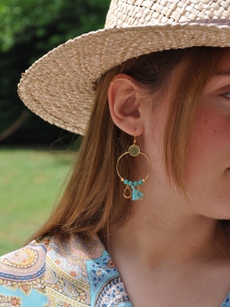 Créoles éventail soleil et demi-lune émaillée vert aqua