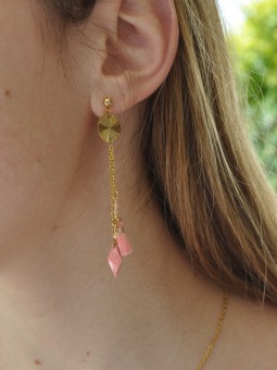 Boucles d'oreilles pendantes fleur filigrane et perles vert d'eau irisé
