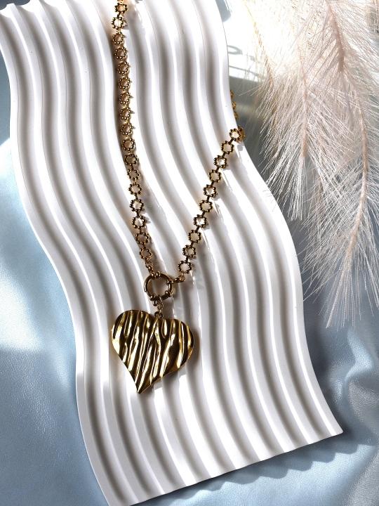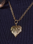Collier chaîne fantaisie & gros pendentif cœur plissé