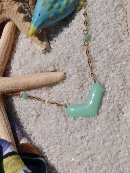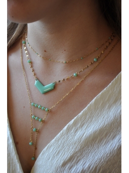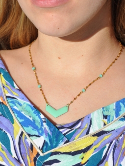 Collier pendentif chevron et perles facettées vert aqua