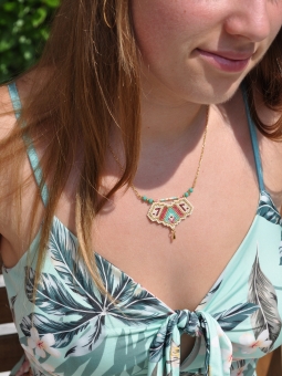 Boucles d'oreilles pendantes et perles de verre multicolore