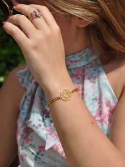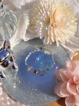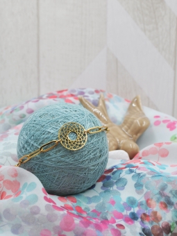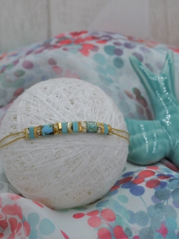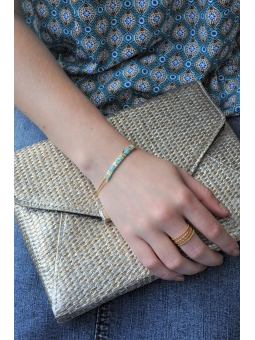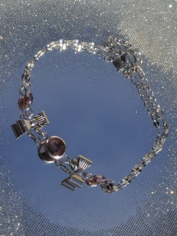 Bracelet multirangs violet mêlant améthystes, suédine, organza et coton