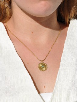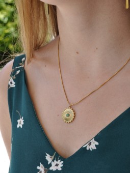 Collier pendentif soleil et cabochon en pierre fine